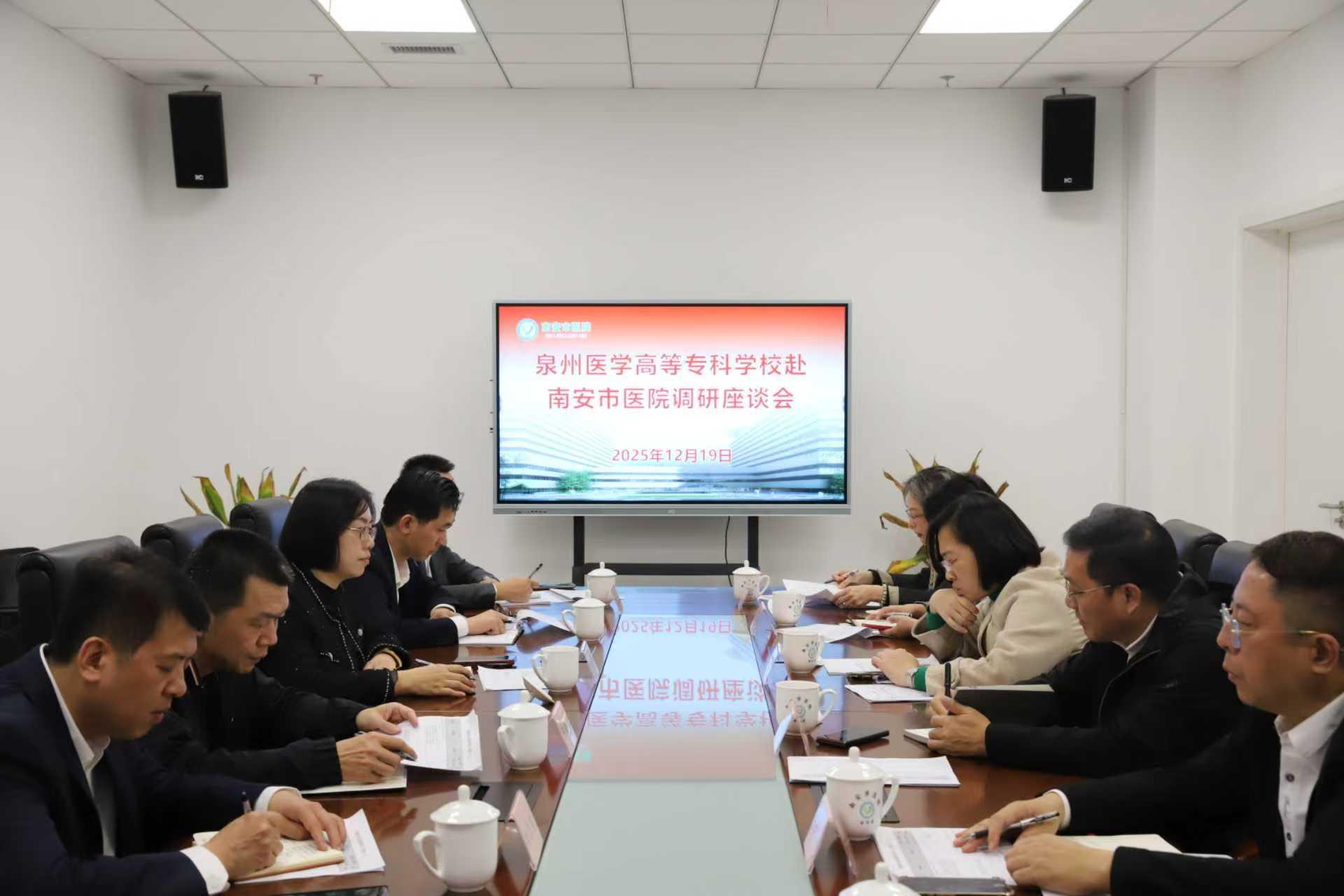 2025年12月19日,为推动院校深度协同发展,泉州医学高等专科学校党委书记李伯群、校长陈婉南带队赴其附属南安市医院,就“教学融合与提升”主题开展专项调研。南安市副市长邱雪亮出席调研座谈会。