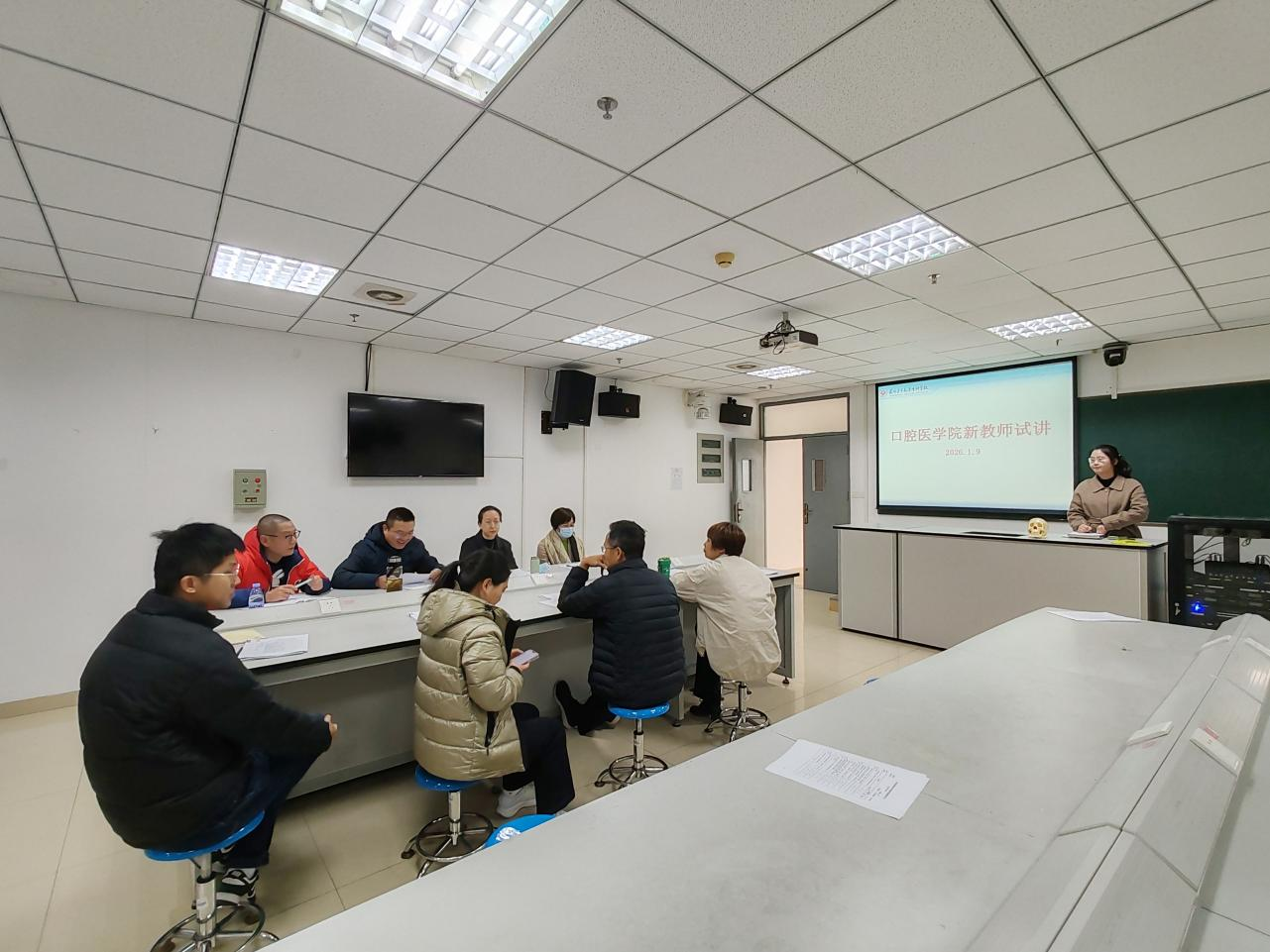 为深入贯彻落实立德树人根本任务,夯实新教师教学基本功,加强师资队伍建设,1月9日下午,我院在学院技能实训室(3)精心组织开展1名新教师试讲。活动由分管教学副院长张勇主持,教务处、人事处相关领导,学院领导班子成员及教学督导专家组成教师评议组,2024级口腔医学专业学生代表组成学生评议组,师生共同参与评议。