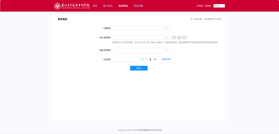首次登录成功后,请立即进入右上角我的账号,修改初始密码为强度高的个人密码。