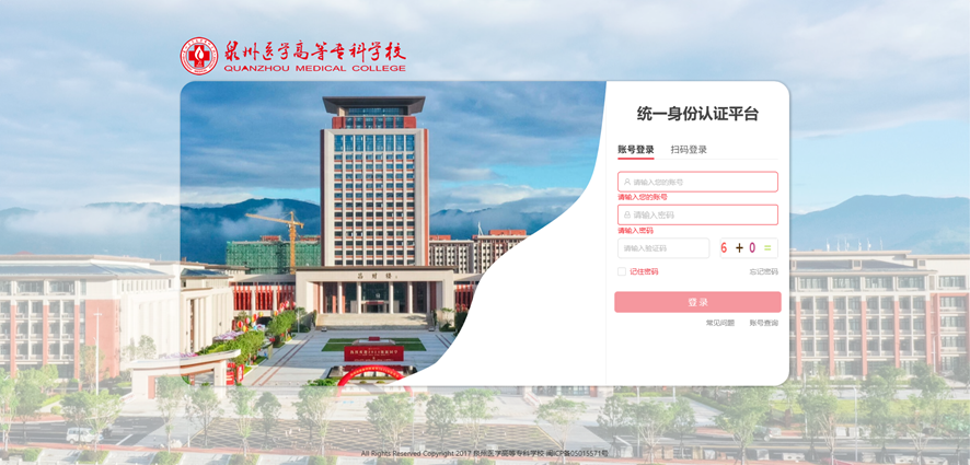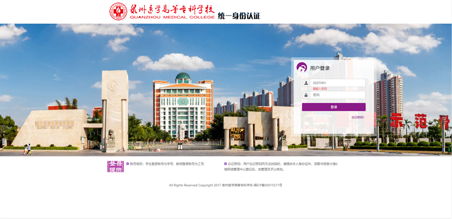 访问 http://10.10.5.30:4106, 登录泉州医学高等专科学校服务大厅。
