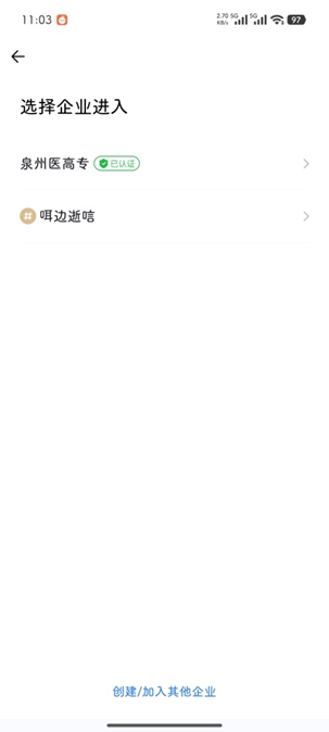 手机应用商店中下载安装“企业微信”app,打开后选择手机号登录,登录后选择企业“泉州医高专”进入。企业微信服务包括移动OA、espace云盘、教学评价、教职工请假(销假)申请、教职工公寓短期住房申请、南安校区后勤报修、考勤查询、IT设备故障报修、网络机房进入申请等。