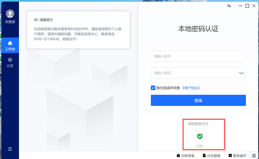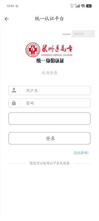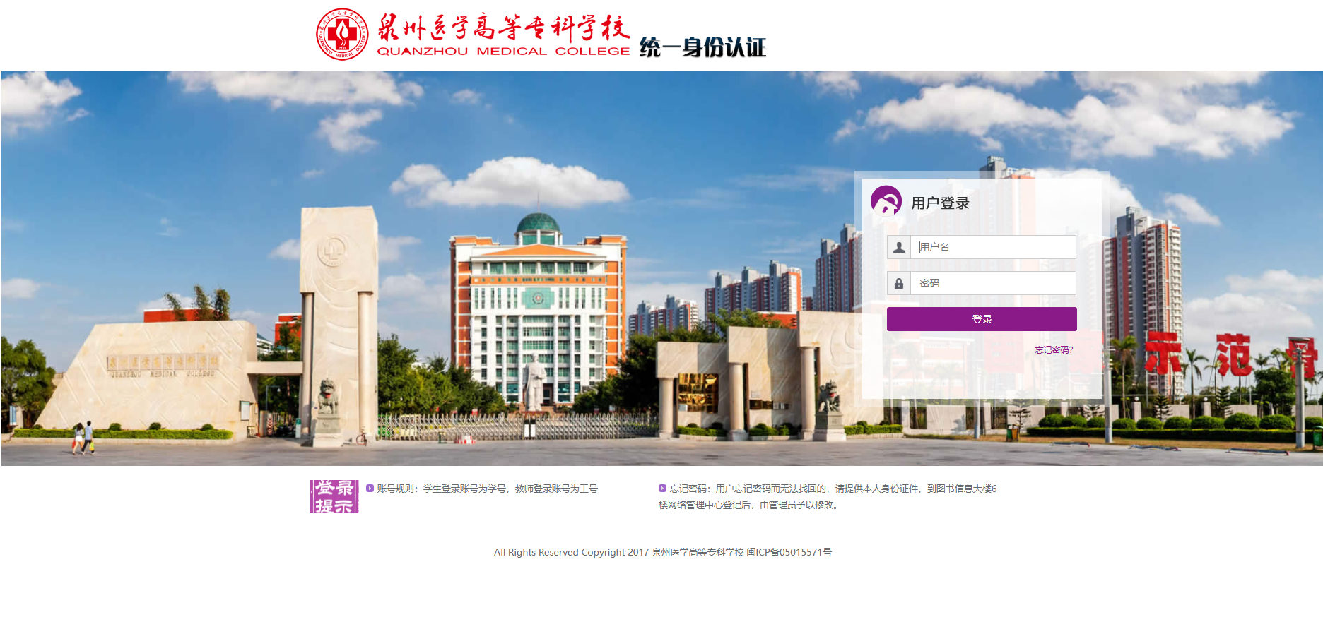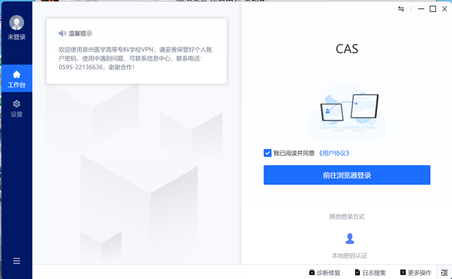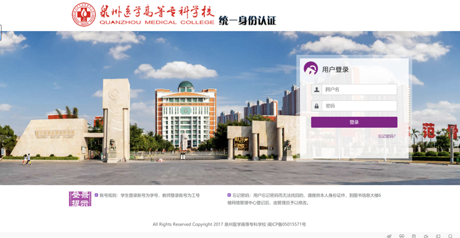 电脑端用户首次登录,打开浏览器输入:https://vpn.qzmc.edu.cn,使用学校统一身份认证登录。