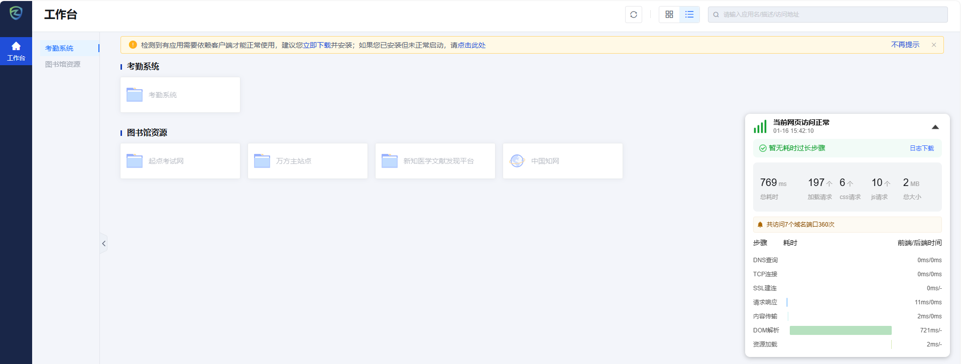 点击连接,输入学校统一身份认证的用户名、密码,登录后即可看见账号被授权的应用, 点击相应应用即可访问。