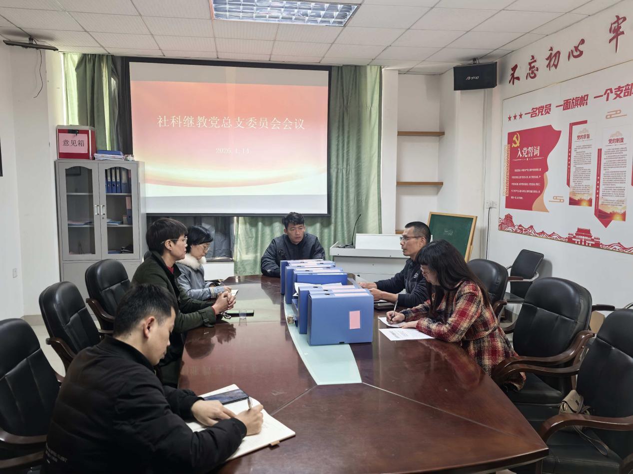 1月14日,社科继教党总支在洛江校区图书信息中心七楼小会议室召开总支委员会议,会议以深入学习贯彻上级重要精神为核心,统筹部署全面从严治党、意识形态工作及年度重点任务,为2026年各项工作高质量开展筑牢思想根基、明确行动方向。党总支书记曾树东主持会议并讲话。