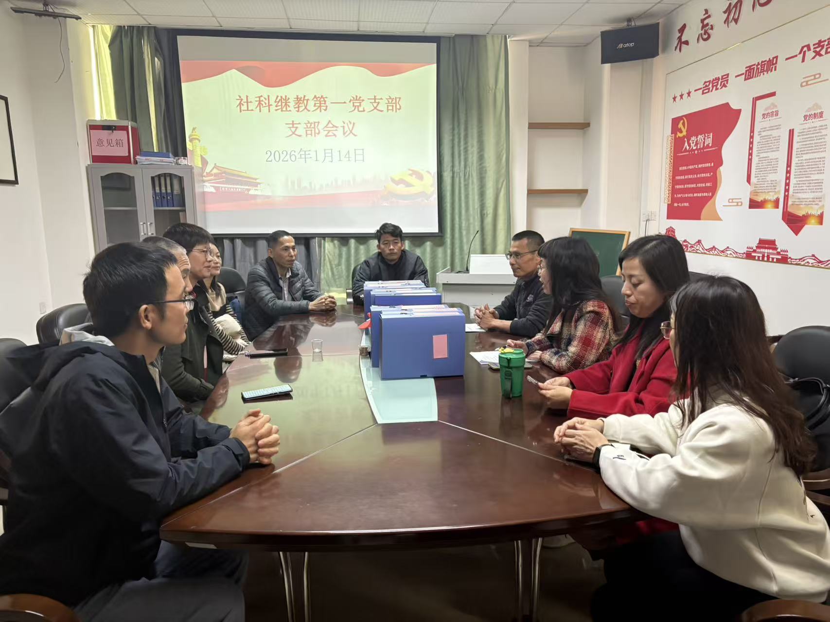 2026年1月14日,社科继教第一党支部组织全体党员集中学习国家主席习近平2026年新年贺词,深入领会贺词精神实质,凝聚育人奋进力量。