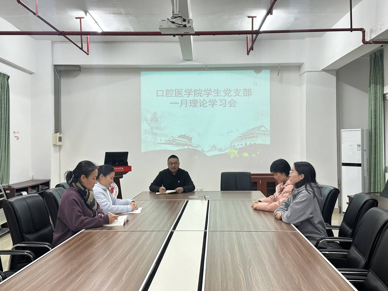 2026年1月20日,口腔医学院学生党支部召开一月理论学习会,学生党支部书记周勋辉同志主持会议,学生党支部全体教师党员参加,学生党员和入党积极分子线上参会。