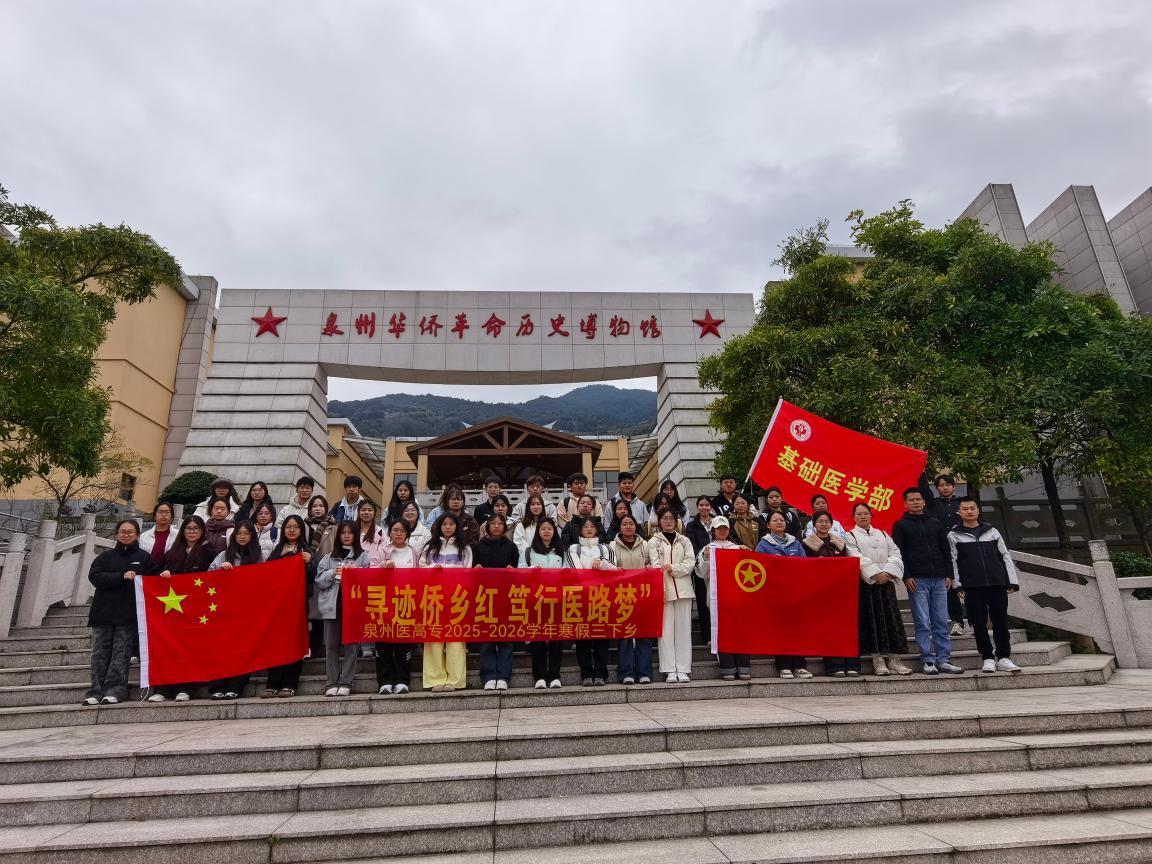 为深入学习贯彻党的二十届四中全会精神,落实立德树人根本任务,引导青年学子扎根基层沃土,积极响应“追寻领袖足迹 激发文化创新创造活力”社会实践活动号召,1月23日下午,基础医学部组织48名师生,前往泉州华侨历史革命博物馆与叶飞故居开展“寻迹侨乡红 笃行医路梦”红色主题研学实践活动,在实地走访中感悟革命先辈精神,厚植爱国爱乡情怀。