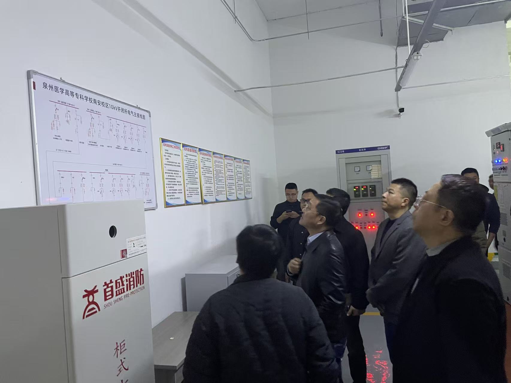 检查过程按照“全覆盖、无盲区”原则,先后深入配电房、危化品室、消控室、监控室、消防水泵房、电动车停车棚、校园围墙等关键区域开展细致排查,通过现场询问、查阅台账等方式,检查安全管理制度落实、设备运行维护及应急保障等情况。