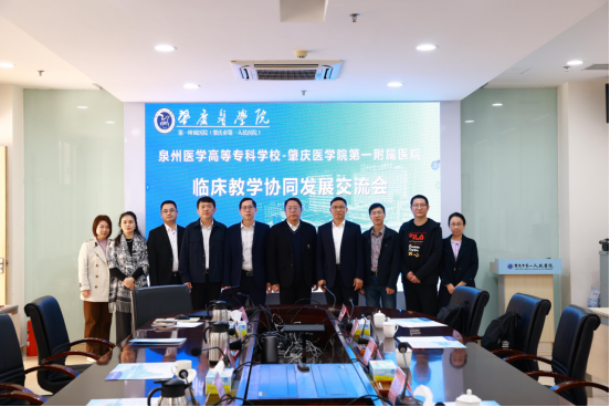 为进一步促进校院融合发展,优化临床教学体系,提升临床实践教学质量,2026年2月6日,泉州医学高等专科学校林迳苍副校长、附属南安市医院杨昌毅书记、教务处、临床医学院及附属南安市医院相关人员,赴肇庆医学院第一附属医院开展临床教学协同发展专题交流学习。