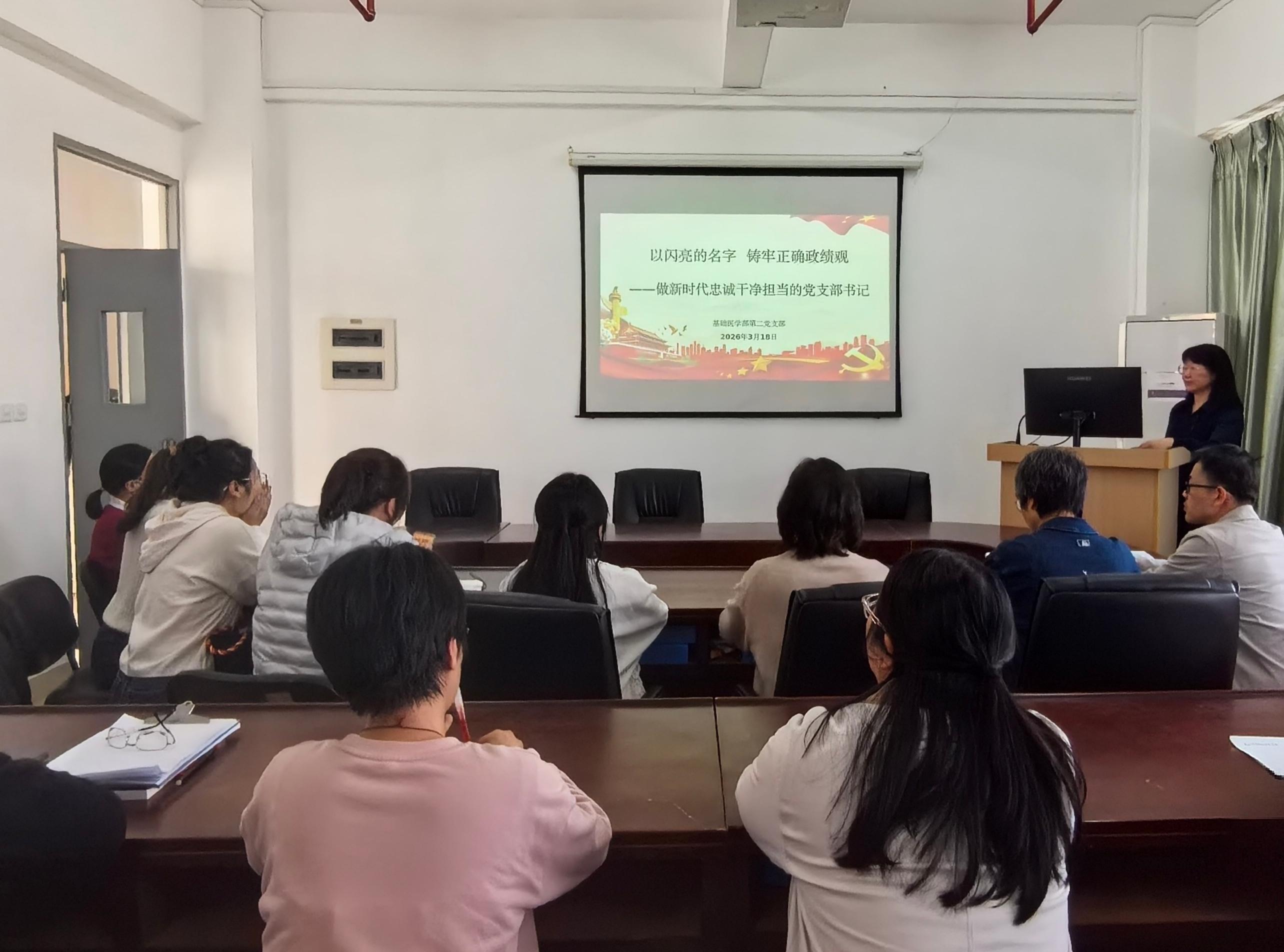 2026年3月18日下午,基础医学部第二党支部组织开展“树立和践行正确政绩观”主题党日活动,会议由党支部书记许秀秀主持,支部全体党员参加。