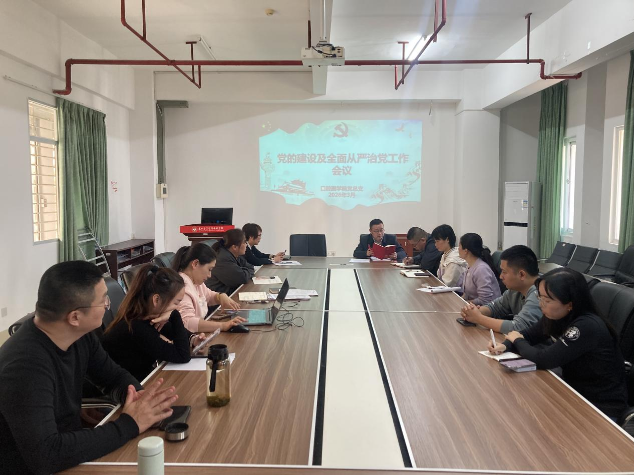 3月24日下午,口腔医学院党总支在学院会议室召开2026年党的建设暨全面从严治党工作会议。学院全体党员、教研室主任、副科及以上干部参加会议。会议由学院党总支书记吕红军主持。