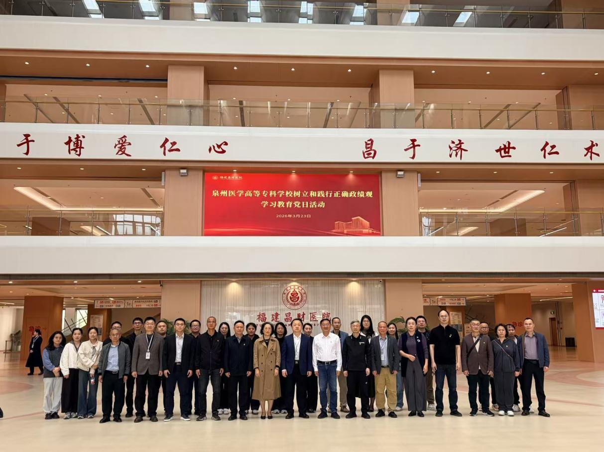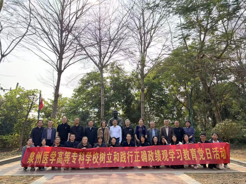 为深入学习贯彻习近平新时代中国特色社会主义思想,将树立和践行正确政绩观学习教育与中心工作紧密结合,落实“立党为公、为民造福、科学决策、真抓实干”总要求,贯彻落实省、市委“深学争优、敢为争先、实干争效”行动部署,进一步深化医教协同与产教融合,3月23日下午,泉州医学高等专科学校党委书记李伯群带领学校机关第三党支部、附属人民医院党委班子成员,以及组织部、人事处、教务处、科技中心等部门负责人一行31人,赴南安市李光前故居纪念馆开展现场教学,并前往福建昌财医院调研交流,共谋院校合作发展。