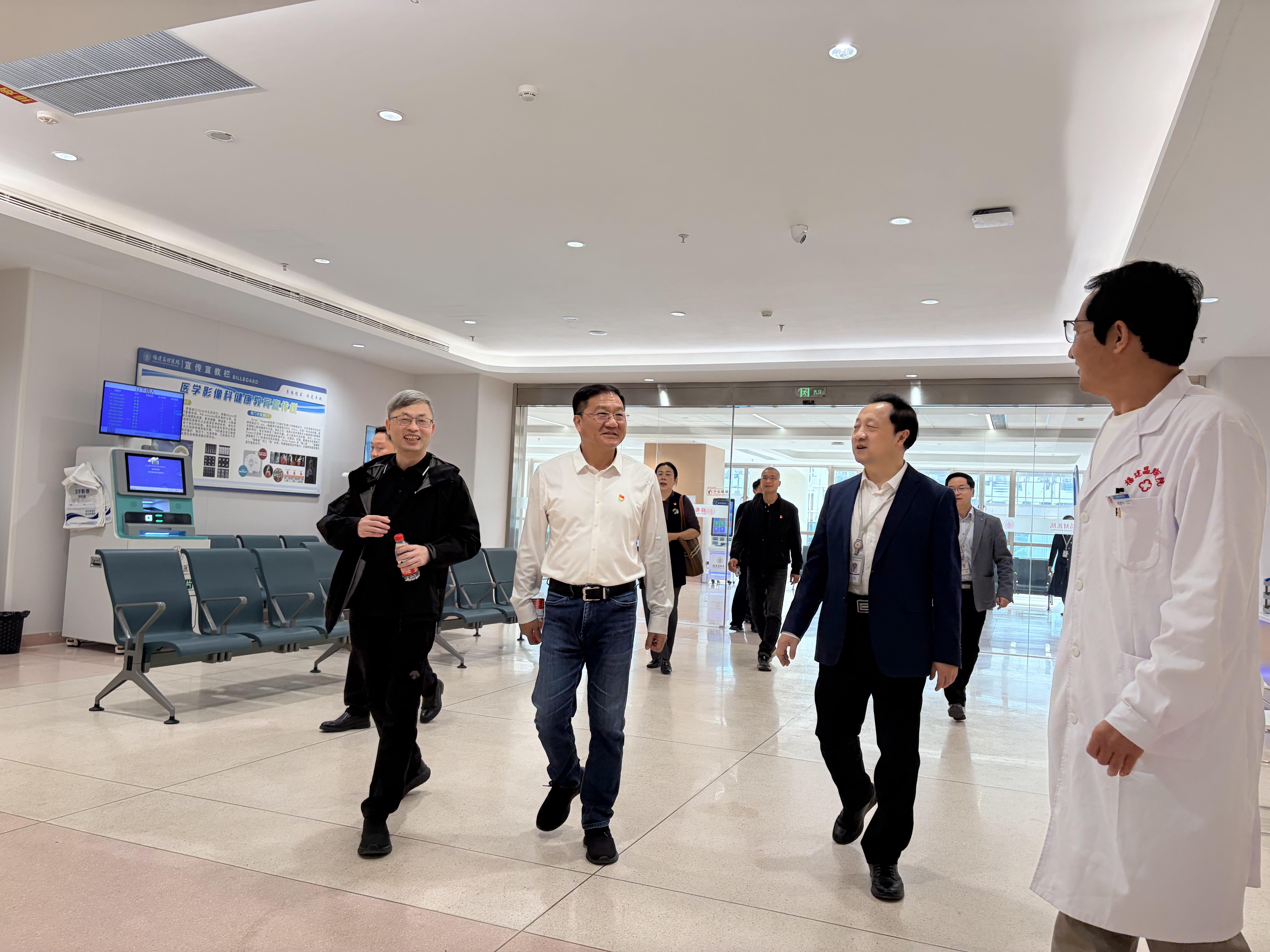 在福建昌财医院常务副院长、党支部书记邓放陪同下,李伯群书记一行实地参观了医院PET-CT中心、放疗中心、医学影像科及口腔科等重点科室,详细了解医院在肿瘤诊疗、医学影像、口腔医学等领域的设备配置与技术实力。