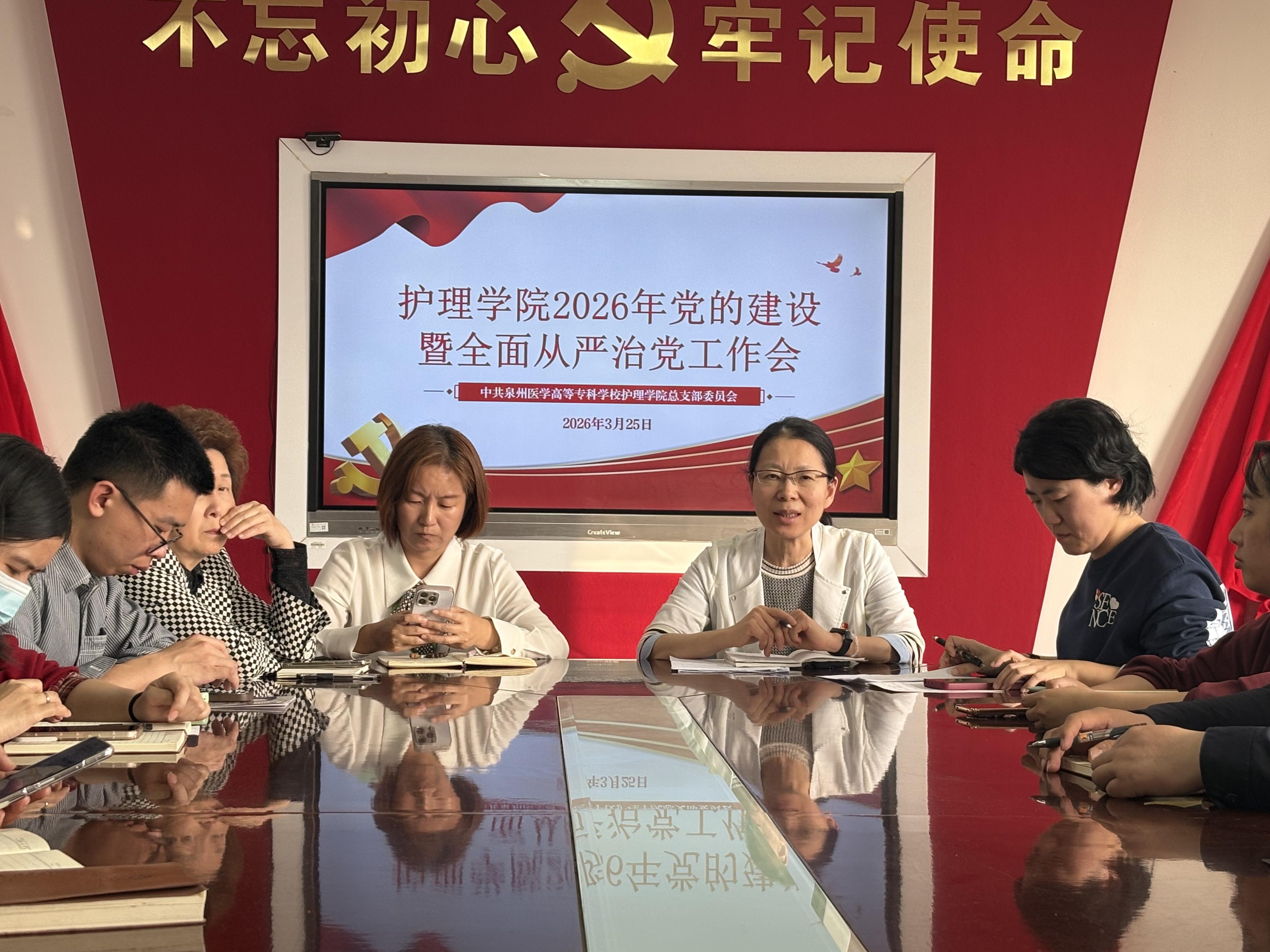 3月25日,护理学院召开2026年党的建设暨全面从严治党工作会。学院全体党员参加会议,会议由党总支书记洪迎迎主持。
