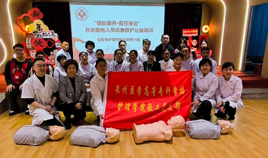 3月23日下午,护理学院教工党支部前往泉州市社会福利中心开展“银龄康养·救在身边”养老服务人员应急救护公益培训。先锋党小组负责人张鑫老师围绕老年人噎食处置、海姆立克急救法开展专题授课与实操演示,党员教师与学生志愿者带领养老护理员分组练习心肺复苏、海姆立克急救等技能,以理论结合实操的方式,切实提升基层养老服务人员应急处置能力,筑牢老年人健康安全防线。