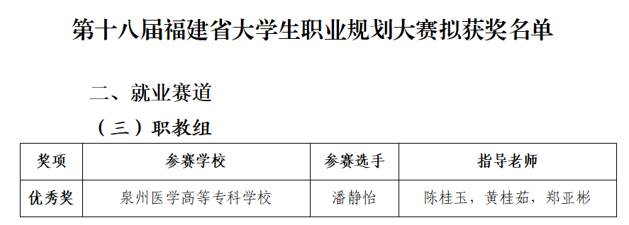 我院学子潘静怡同学在第十八届福建省大学生职业规划大赛中荣获佳绩